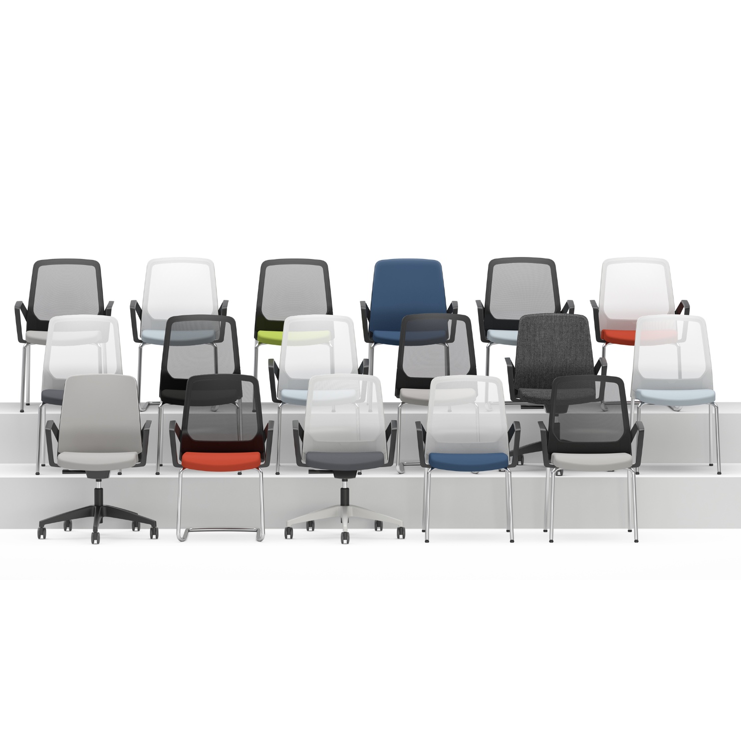 Clear optical lines with well thought out details. Practical and flexible. Full of character with the highest degree of comfort. A lightness of touch, a timeless fresh feel and an overall intelligent design all characterise this family of chairs.