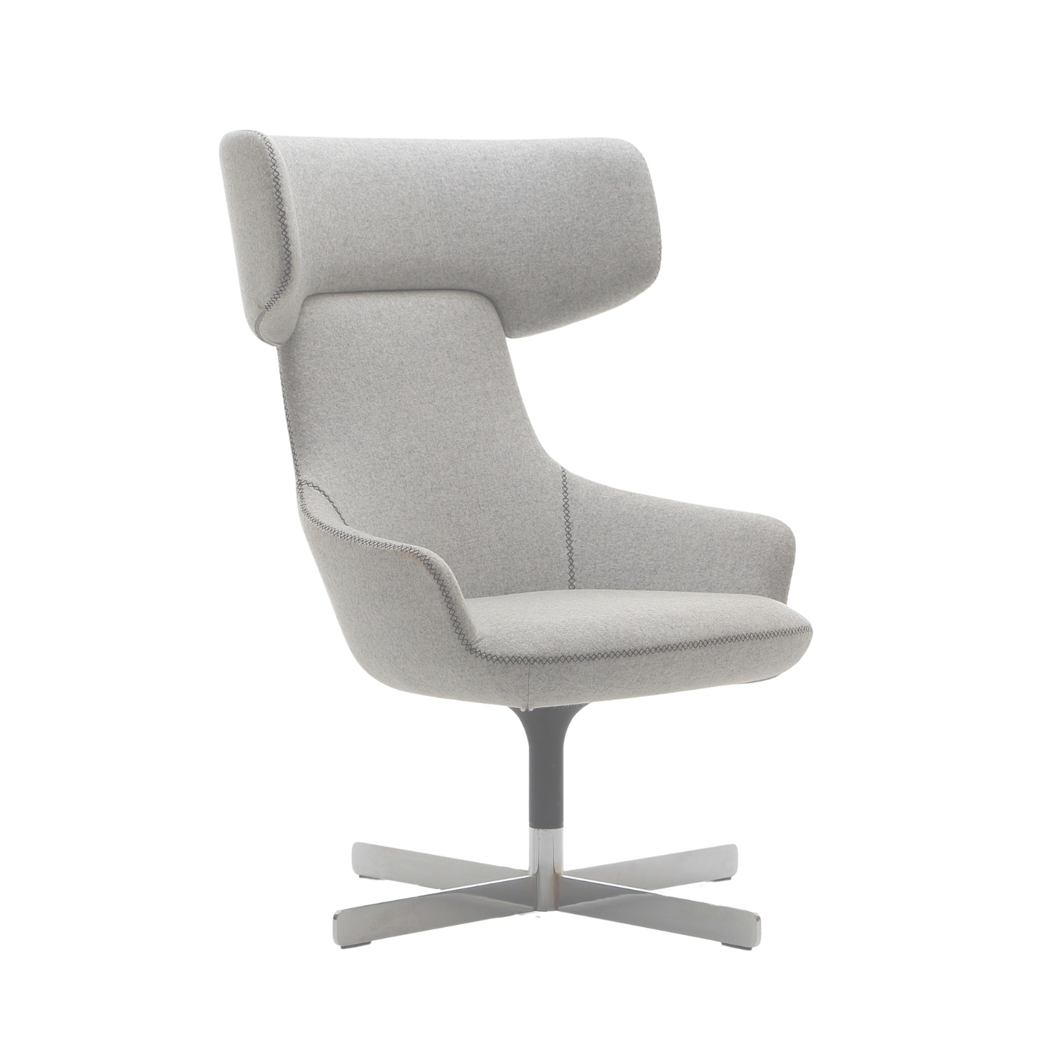 As the more generously proportioned older brother to the Hendrix Mini, the Hendrix is suited to a lounging area with a higher back and a rounded headrest that offers privacy for making calls on a mobile phone, in larger public space areas. Fluidity is the key with Hendrix, the wine glass shaped stem flows into the seats under its curve, blending in a positive direction until it meets its “iconic fringe line” connection, where the headrest meets the main body of the chair.