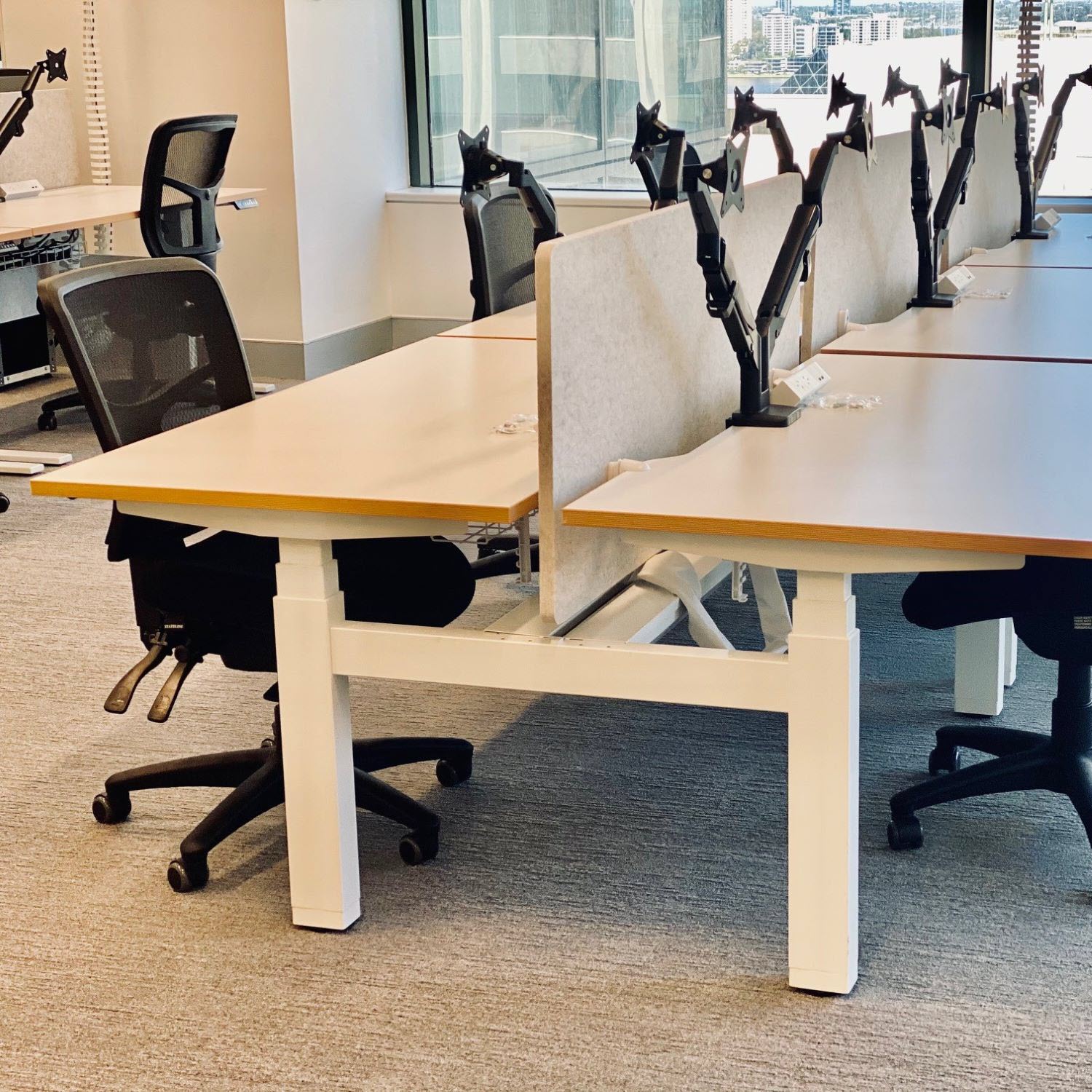 LIFT is an electric lift height adjustable desk system that allows you to move from a sitting work desk to a standing work desk at the touch of a button. LIFT features electronically synchronized dual motor technology that quietly adjusts the desktop from 600mm to 1250mm in 15 seconds.