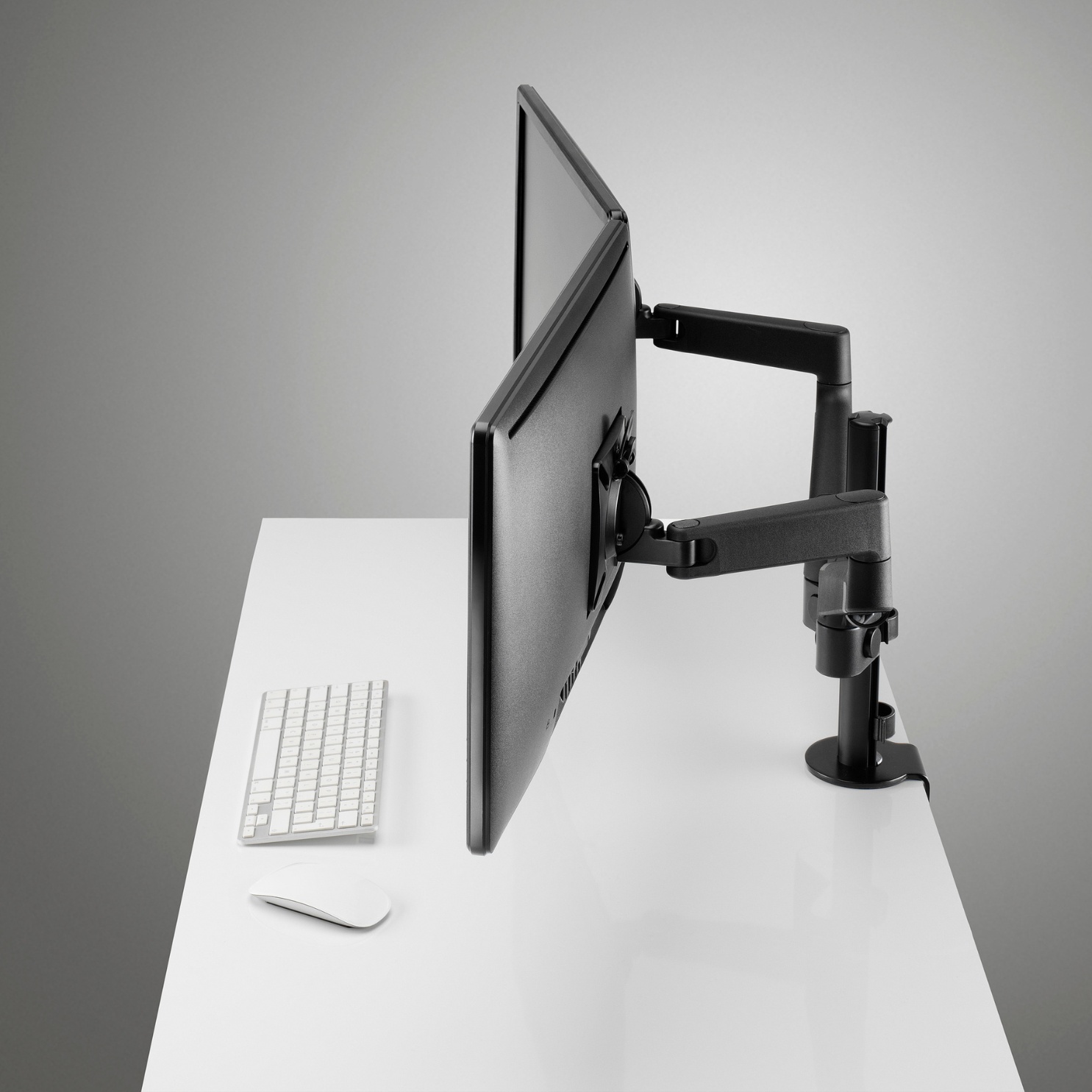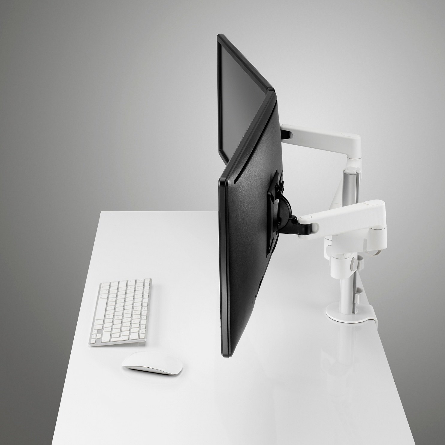 As your workspace needs grow, Lima can too. Adding another monitor is quick and easy to do. Just order another extension arm, and then you can slide it directly on to the post. No tools, and no need to remove the existing arm, screen and cables, which means less hassle for you. When using Lima in a dual screen configuration having a separate arm for each screen gives you unrivaled levels of adjustment. From screen height, distance and angle, Lima has the flexibility to adjust your screen technology to your personal requirements and that of the task at hand.